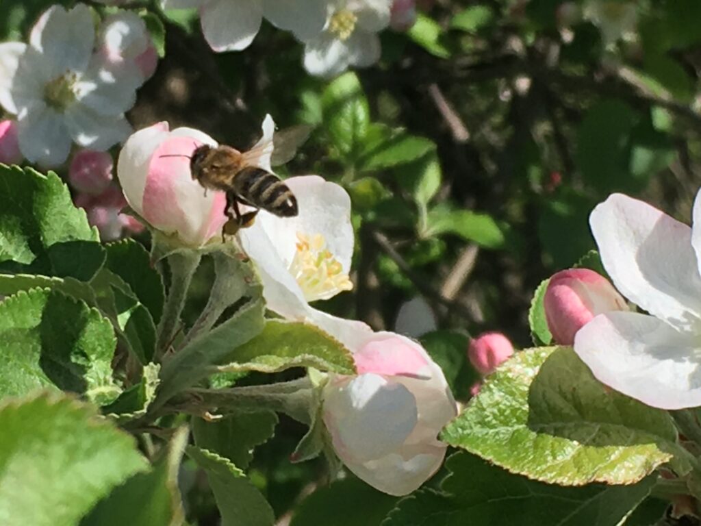 Our Spring honey is a wonderful golden color, light in flavor. Made from the nectar of apples (shown at the right), pears, maples, locust, and more. Early summer is our main honey harvest. Most customers prefer this.